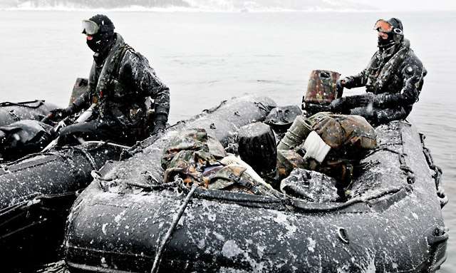 Pinzgauer im Extrem-Einsatz! Auch bei den Radfahrzeugen überlassen die Royal Marines nichts dem Zufall. Der Pinzgauer wurde von der britischen Armor Holdings Inc. in großen Stückzahlen für die britischen Streitkräfte produziert. Nach der Übernahme der Firma durch BAE Systems wurde die Produktion des Pinzgauer aber eingestellt. Bei Steyr laufen schon lange keine Pinzgauer mehr vom Band. |
